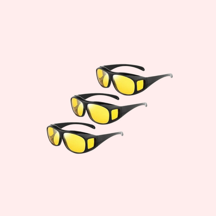 3stuks – Nachtzichtbrillen – Overzet Bril Nachtzicht – Overzetzonnebrillen – Unisex – Nachtbril – Nachtbril Auto – Veilig Rijden in de nacht – Gele lenzen – Gele bril voor autorijden – Gele Montuur – Met oogdoos