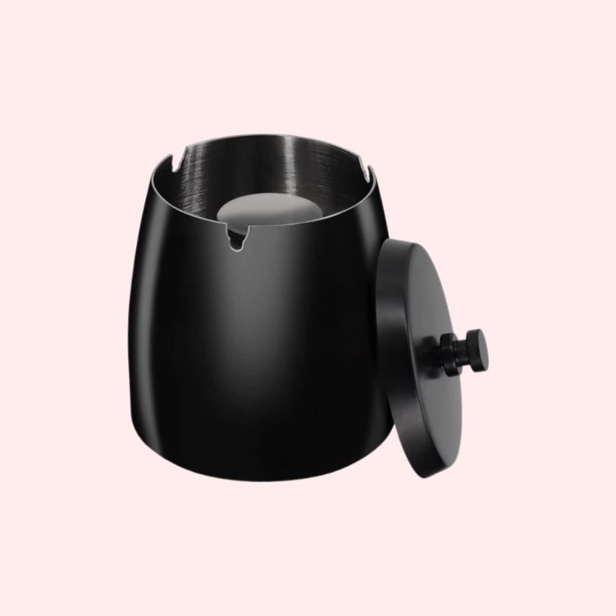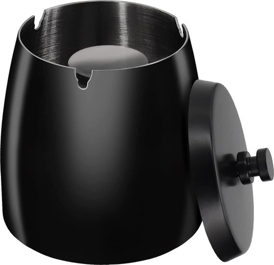 Deze stijlvolle asbak met deksel is gemaakt van hoogwaardig zwart roestvrij staal, wat zorgt voor een luxe en moderne uitstraling. Dankzij het stevige materiaal is de asbak niet alleen duurzaam, maar ook eenvoudig schoon te maken en bestand tegen dagelijks gebruik.