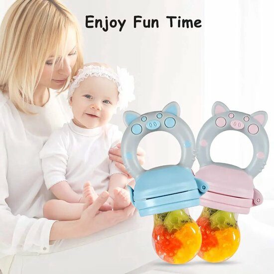 Uniek Ontwerp – Deze babybijtring met fruitzuigers introduceert gemakkelijk
