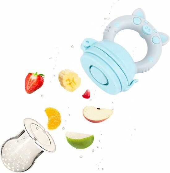 Babyfruitvoederfopspeen – Geschikt voor baby’s vanaf 4 maanden en ouder – Babyfruit bijtring – Blauw – Fruitspeen