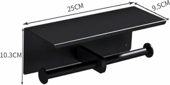 Op zoek naar een praktische en stijlvolle toevoeging voor je badkamer? Deze zwarte Dubbele WC Rolhouder met plankje is de perfecte oplossing! Gemaakt van roestvrijstaal en voorzien van 2 houders voor toiletrollen, is dit badkamer accessoire ideaal voor thuis, op kantoor en in de horeca. Het handige plankje biedt extra ruimte voor je telefoon, zeeppompje of reserve wc rollen. Waar wacht je nog op? Maak je badkamer compleet met deze toilet rolhouder!