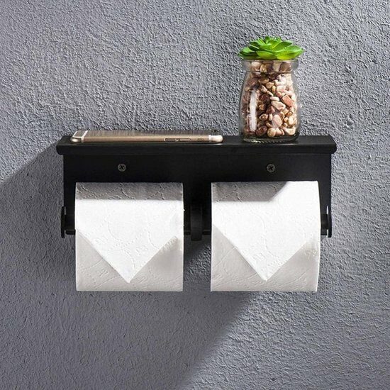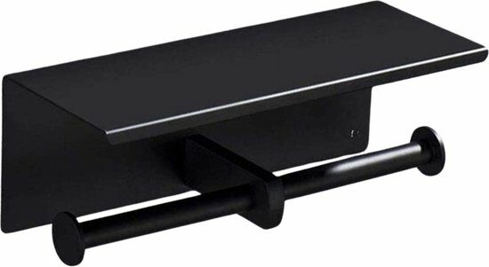 Monteer deze zwart met plankje WC rolhouder gemakkelijk aan de muur. Perfect badkamer accessoire.