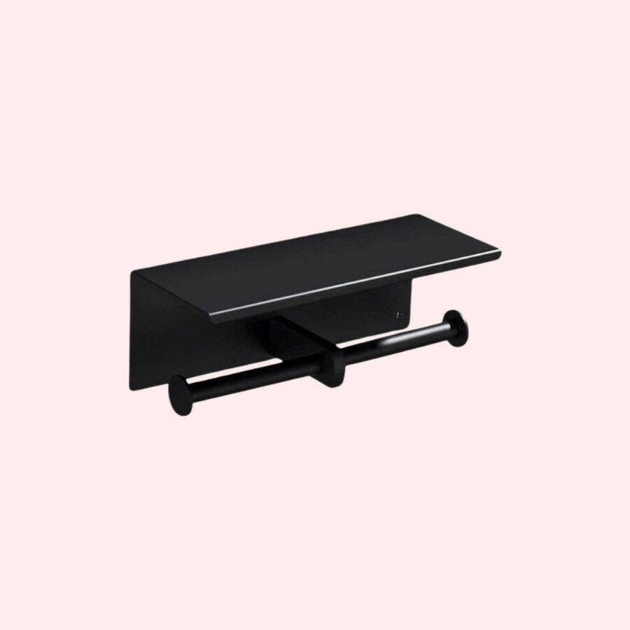 Dubbele WC Rolhouder – met Plankje – Toilet Rolhouder – Zwart – RVS – Incl Schroeven – WC Papier Houder