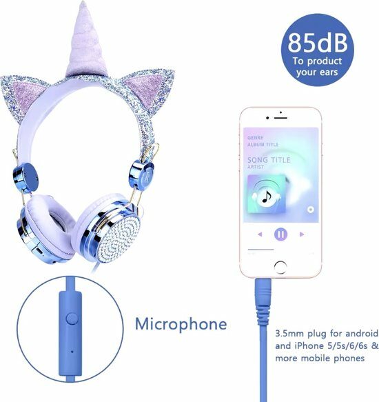 Dit zijn mooie koptelefoons voor meisjes en tieners met schattige en grappige persoonlijkheden. Deze hoofdtelefoon past door zijn hoofdbanddesign op de maat van het hoofd, is zeer comfortabel, de oorschelpen zijn zacht en aangenaam om aan te raken. Ze zijn gemaakt van hoogwaardige, duurzame materialen.