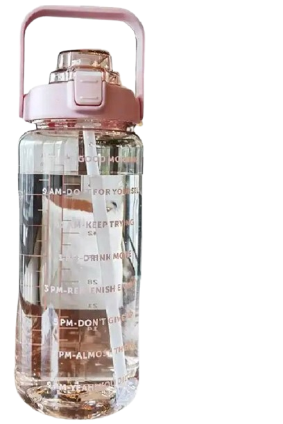 Motivatie Drinkfles- Roze- Fles- 2L fles- Waterfles met rietje- Bidon- 2 liter Waterfles- Water drinken- Fles met tijden- Sportfles