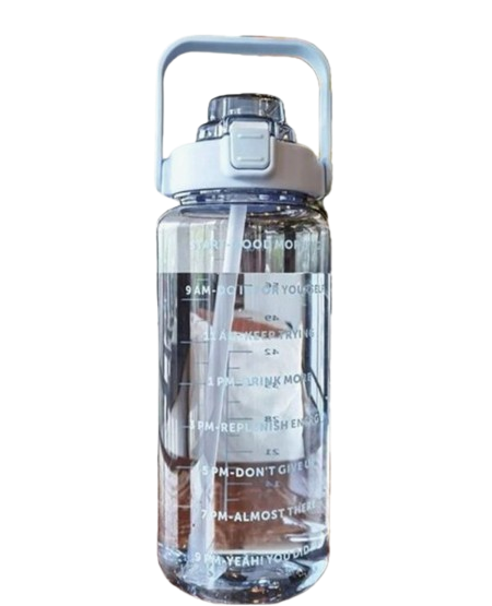 In de fles past maar liefst 2 liter aan water. Dit is ongeveer het aantal wat wij per dag nodig hebben (het exacte aantal verschilt per persoon). Als u dus de gehele fles leeg drinkt gedurende een dag, dan bent u al op de goede weg!