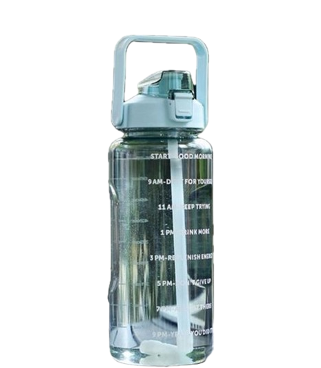 Motivatie Drinkfles- Blauw- Fles- 2L fles- Waterfles met rietje- Bidon- 2 liter Waterfles- Water drinken- Fles met tijden- Sportfles | HH-Shops