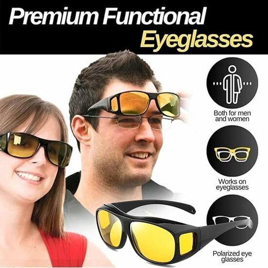 Night Vision Bril – 2 stuks – Nacht bril auto – Autobril – Night vision – Computerbril – Avondbril – Nachtbril Auto – Polarisend – voor dames/heren – Gele bril voor autorijden, computeren, gamen – Lichtgewicht – Nachtblind