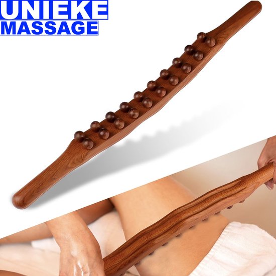 Ons apparaat is gemaakt van hoogwaardig bruin hout, wat zorgt voor duurzaamheid en een luxe uitstraling. De massage stok is voorzien van 20 massageballen, speciaal ontworpen voor een diepgaande en effectieve massage. Het ergonomische ontwerp zorgt ervoor dat het apparaat comfortabel in de hand ligt, waardoor je gemakkelijk elk deel van je lichaam kunt bereiken, van rug en nek tot schouders, armen, en benen.