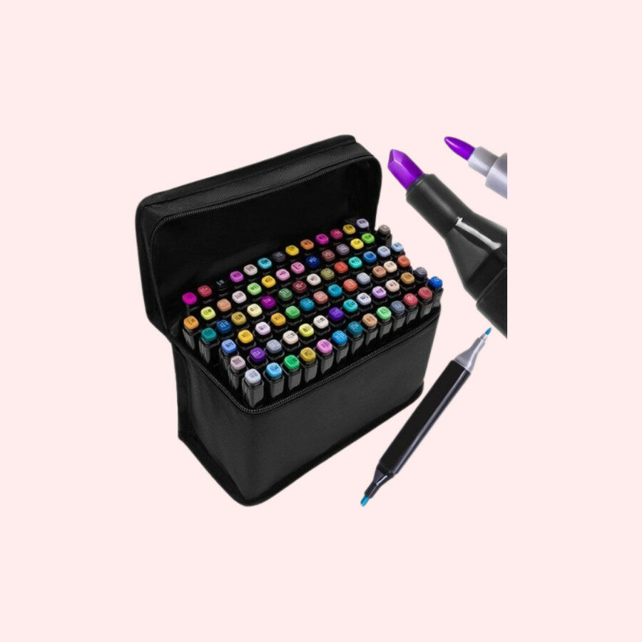 Incl. Levering Stiften – Twinmarkers – Dual-Tip markers – Markeerstiften Alcohol – 80 Deze set van 80 kleurrijke dual-tip markers van S.old zijn een must have voor elke creatieveling. Met dit uitgebreide kleurenpallet maak je de mooiste kaarten, illustraties en handlettering. De stiften zijn gemaakt op basis van alcohol wat als voordeel heeft dat je mooie kleurovergangen, licht en schaduw effecten kunt maken. Ook kun je meerdere keren over eenzelfde stukje heen kleuren zonder dat papier gaat rullen. Je kunt de stiften aan beide kanten gebruiken. De markers worden geleverd in een etui waarin je ze makkelijk kunt opbergen en meenemen. Voor een extra mooi effect gebruik je speciaal markerpapier om doordrukken van kleuren te voorkomen. Specificaties: Inhoud pakket: 80 kleuren stiften in een stoffen etui