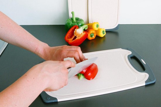 De snijplanken zijn gedeeltelijk gemaakt van afbreekbare tarwestro vezels. Onze plastic snijplanken zijn BPA vrij en veilig voor in de vaatwasser. Bovendien zijn ze niet poreus, waardoor de vloeistoffen niet in de snijplank blijven zitten. Dit is bijvoorbeeld wel het geval bij een bamboe of houten snijplank.