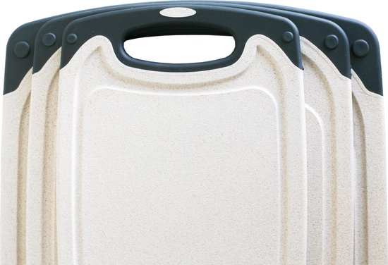Dankzij een mooi design zijn deze kunststof snijplanken niet alleen handig, maar zien ze er ook nog eens mooi uit. Met de luxe beige kleur zullen deze planken zeker niet misstaan in uw keuken.