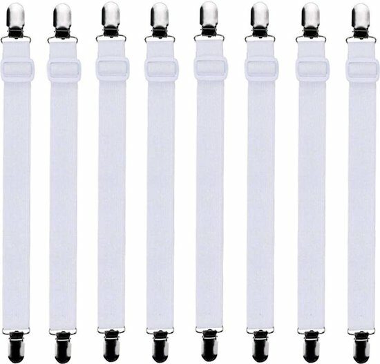 Verstelbare lakenspanner: Onze lakenspanner is aan beide uiteinden voorzien van metalen clips, die stevig aan het laken kunnen worden bevestigd. De spanner is verstelbaar tot een bereik van 130 cm en heeft een breedte van 2,5 cm.