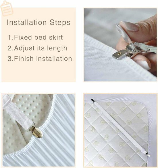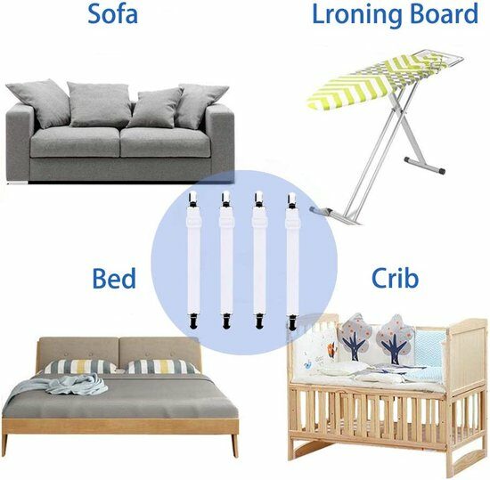 SLAAPCOMFORTABEL: Onze lakenspanner voor het opbergen van lakens is duurzaam en eenvoudig te gebruiken. Bevestig eenvoudig de metalen clips en maak uw bed op zoals u dat normaal ook doet. De lakens waren niet rommelig of gekreukt. Met onze lakenspanner geniet u van zachte en comfortabele lakens voor een comfortabele slaap.